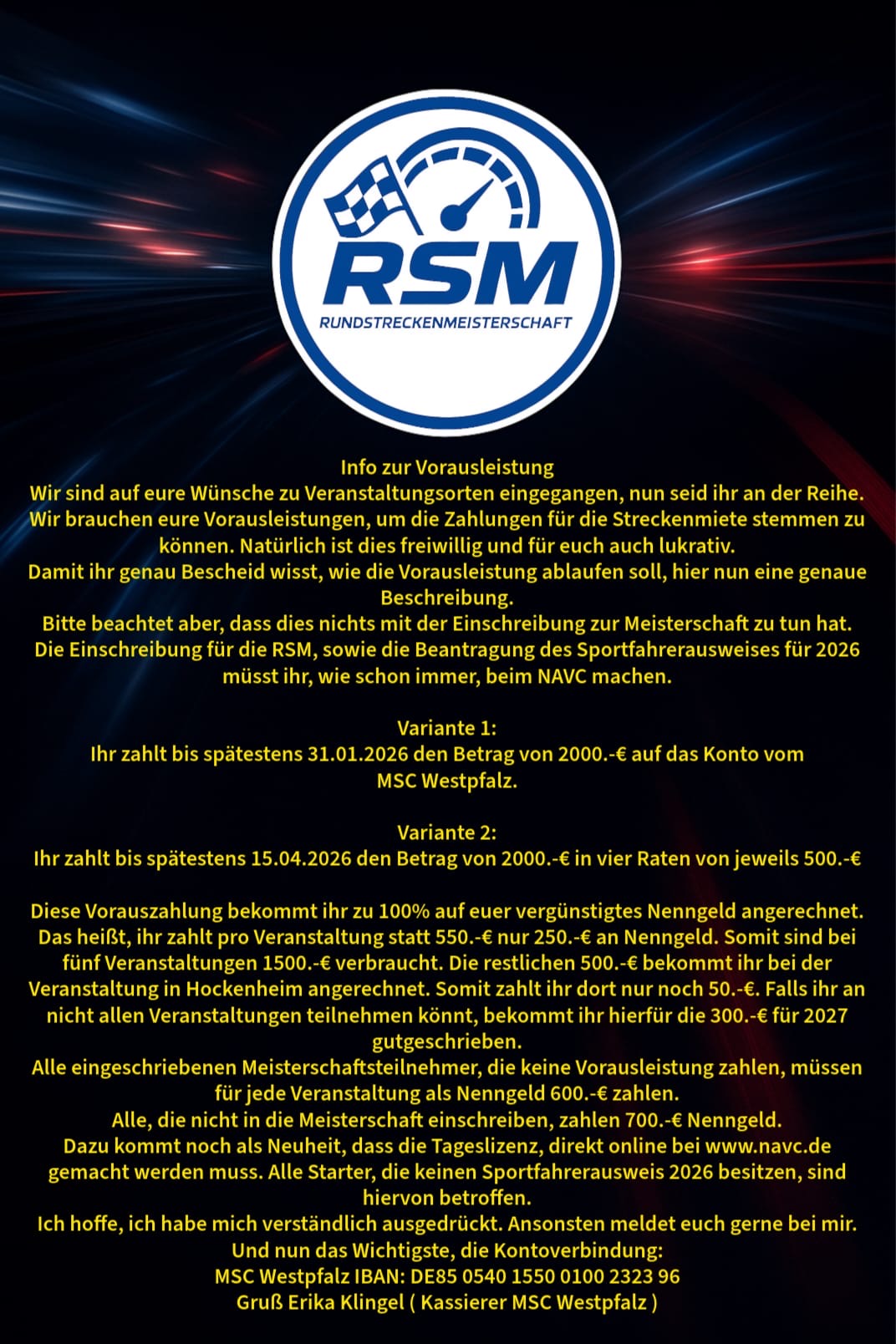 Die Formulare zur Nennung senden Sie bitte ausgefüllt an: info@msc-westpfalz.de